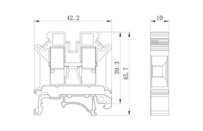Connection method:Screw connection,IEC Rated current:57A,IEC Rated Voltage:800V,Number of connections:2,Number of levels:1,Rated cross section:24-6AWG