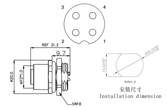 StartseiteProduktzentrumCircular connectorsM12 circular connectorM12 Panel Mounting ConnectorM12A04C-FPSFHUR