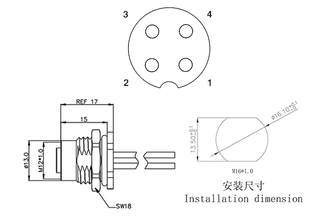 StartseiteProduktzentrumCircular connectorsM12 circular connectorM12 Panel Mounting ConnectorM12A04C-FRHR-UC0.5