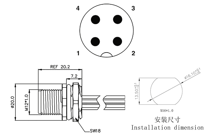 StartseiteProduktzentrumCircular connectorsM12 circular connectorM12 Panel Mounting ConnectorM12A04C-MFHR-UC0.5