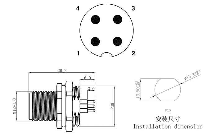 StartseiteProduktzentrumCircular connectorsM12 circular connectorM12 Panel Mounting ConnectorM12A04C-MPBFHUS