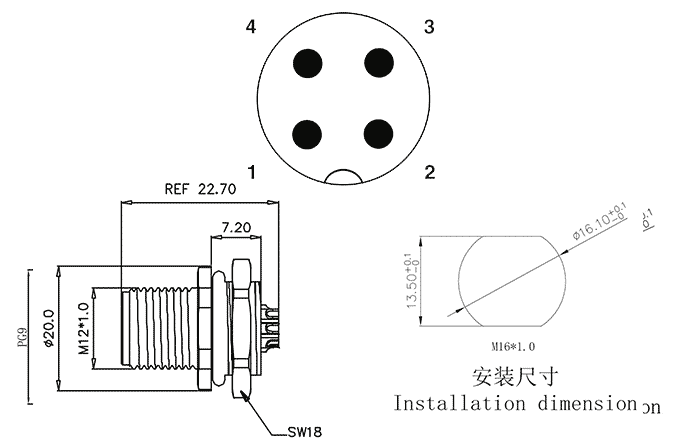 StartseiteProduktzentrumCircular connectorsM12 circular connectorM12 Panel Mounting ConnectorM12A04C-MPSFHUR