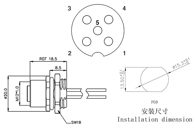 StartseiteProduktzentrumCircular connectorsM12 circular connectorM12 Panel Mounting ConnectorM12A05C-FFHS-UC0.5