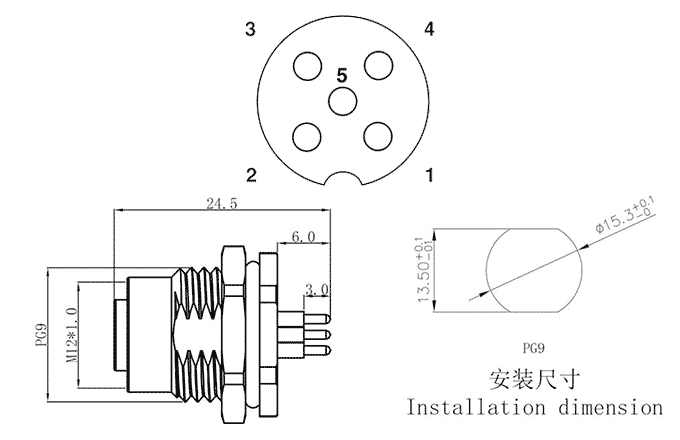 StartseiteProduktzentrumCircular connectorsM12 circular connectorM12 Panel Mounting ConnectorM12A05C-FPBRHUS