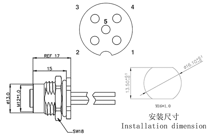 StartseiteProduktzentrumCircular connectorsM12 circular connectorM12 Panel Mounting ConnectorM12A05C-FRHR-UC0.5