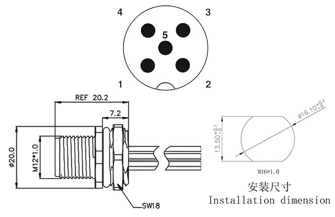StartseiteProduktzentrumCircular connectorsM12 circular connectorM12 Panel Mounting ConnectorM12A05C-MFHR-UC0.5