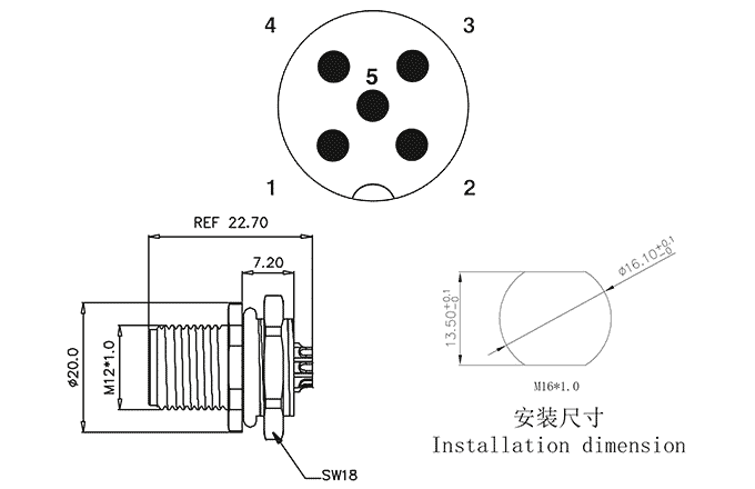 StartseiteProduktzentrumCircular connectorsM12 circular connectorM12 Panel Mounting ConnectorM12A05C-MPSFHUR