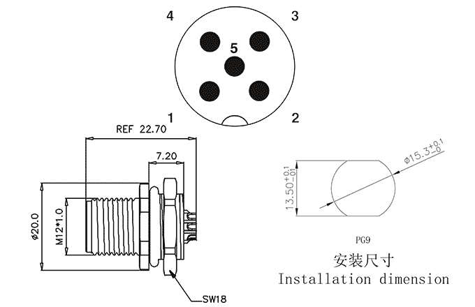 StartseiteProduktzentrumCircular connectorsM12 circular connectorM12 Panel Mounting ConnectorM12A05C-MPSFHUS