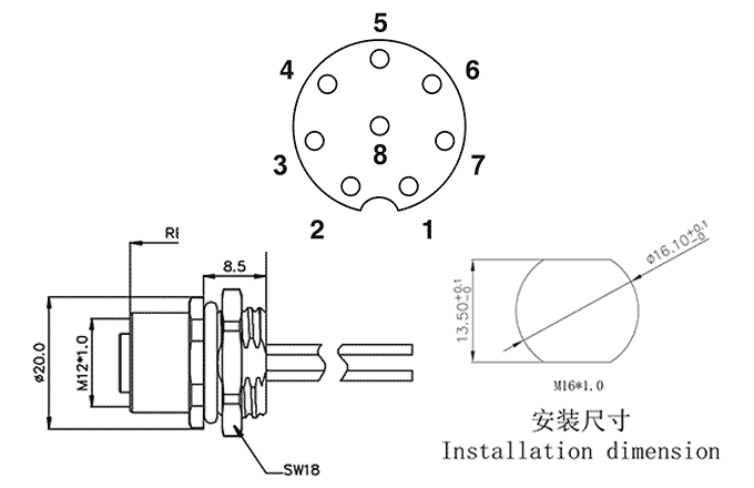 StartseiteProduktzentrumCircular connectorsM12 circular connectorM12 Panel Mounting ConnectorM12A08C-FFHR-UC0.5