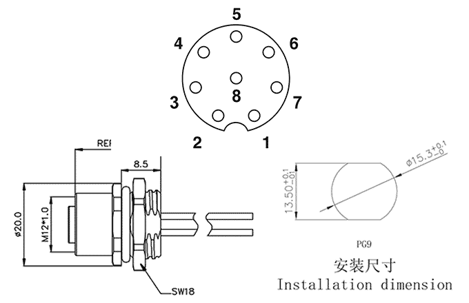 StartseiteProduktzentrumCircular connectorsM12 circular connectorM12 Panel Mounting ConnectorM12A08C-FFHS-UC0.5