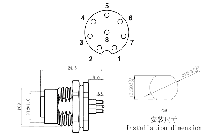 StartseiteProduktzentrumCircular connectorsM12 circular connectorM12 Panel Mounting ConnectorM12A08C-FPBRHUS