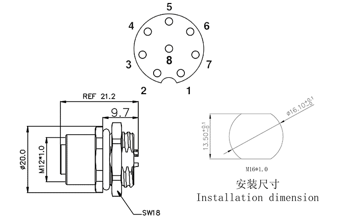 StartseiteProduktzentrumCircular connectorsM12 circular connectorM12 Panel Mounting ConnectorM12A08C-FPSFHUR