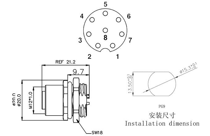 StartseiteProduktzentrumCircular connectorsM12 circular connectorM12 Panel Mounting ConnectorM12A08C-FPSFHUS