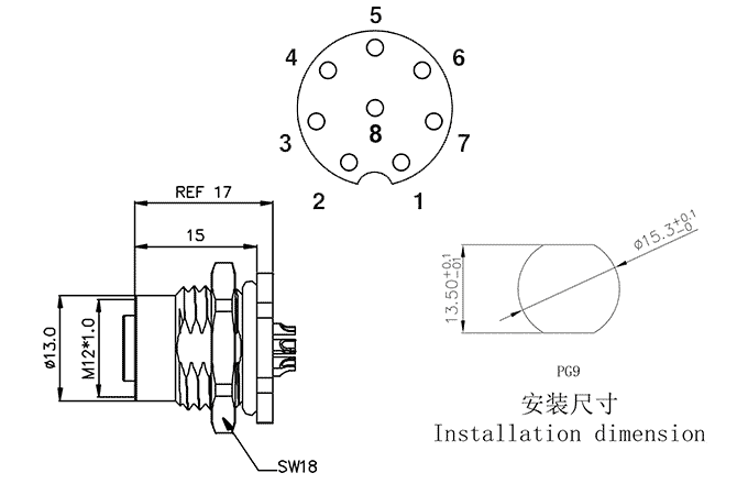 StartseiteProduktzentrumCircular connectorsM12 circular connectorM12 Panel Mounting ConnectorM12A08C-FPSRHUS