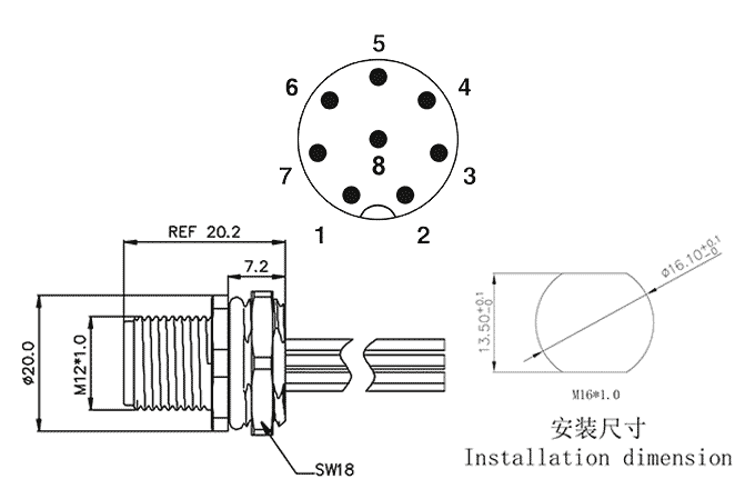 StartseiteProduktzentrumCircular connectorsM12 circular connectorM12 Panel Mounting ConnectorM12A08C-MFHR-UC0.5