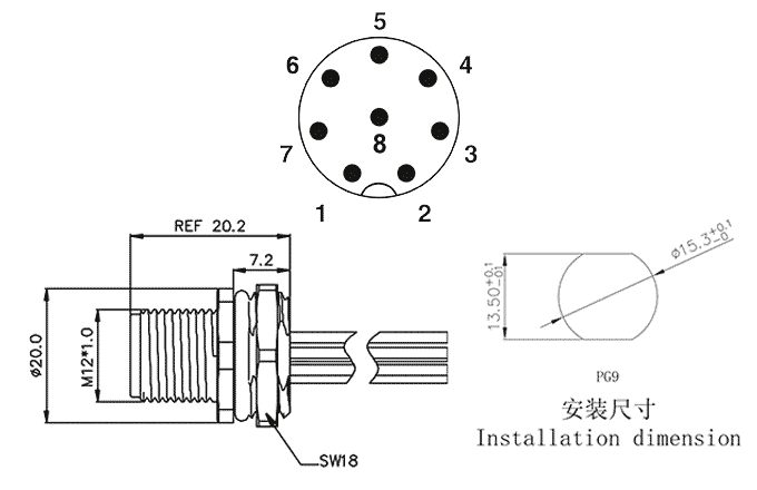 StartseiteProduktzentrumCircular connectorsM12 circular connectorM12 Panel Mounting ConnectorM12A08C-MFHS-UC0.5