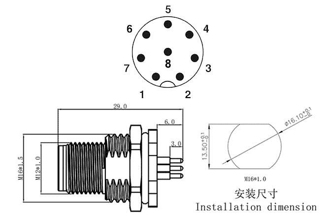 StartseiteProduktzentrumCircular connectorsM12 circular connectorM12 Panel Mounting ConnectorM12A08C-MPBRHUR