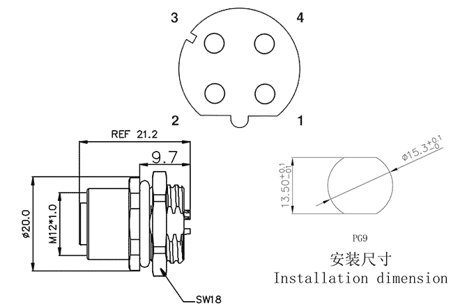StartseiteProduktzentrumCircular connectorsM12 circular connectorM12 Panel Mounting ConnectorM12D04C-FPSFHUS