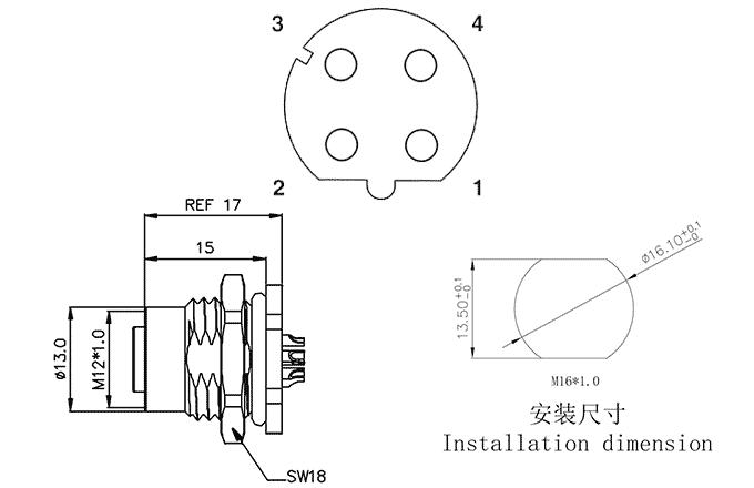 StartseiteProduktzentrumCircular connectorsM12 circular connectorM12 Panel Mounting ConnectorM12D04C-FPSRHUR