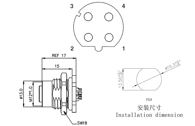 StartseiteProduktzentrumCircular connectorsM12 circular connectorM12 Panel Mounting ConnectorM12D04C-FPSRHUS