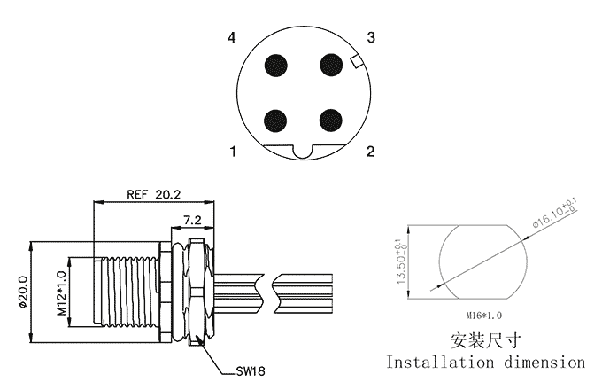 StartseiteProduktzentrumCircular connectorsM12 circular connectorM12 Panel Mounting ConnectorM12D04C-MFHR-UC0.5