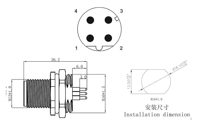 StartseiteProduktzentrumCircular connectorsM12 circular connectorM12 Panel Mounting ConnectorM12D04C-MPBFHUR