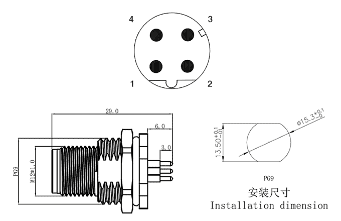 StartseiteProduktzentrumCircular connectorsM12 circular connectorM12 Panel Mounting ConnectorM12D04C-MPBRHUS