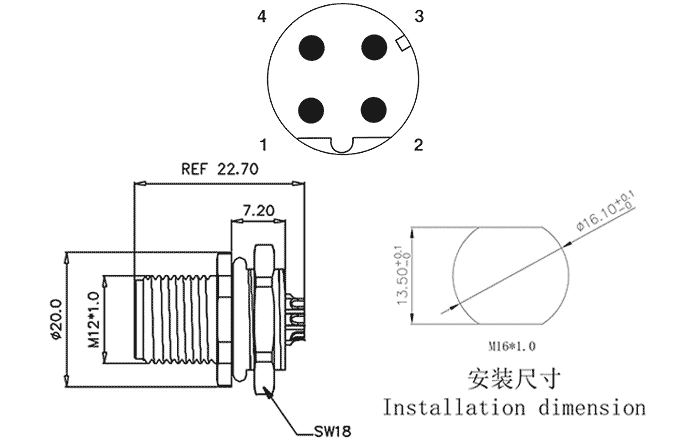 StartseiteProduktzentrumCircular connectorsM12 circular connectorM12 Panel Mounting ConnectorM12D04C-MPSFHUR
