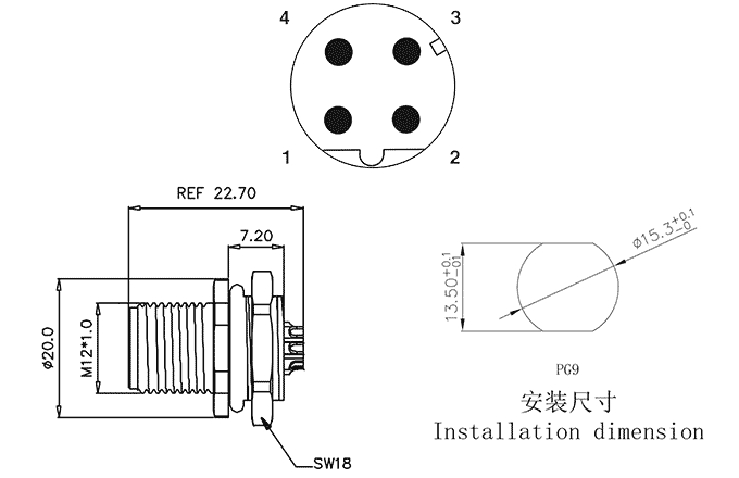 StartseiteProduktzentrumCircular connectorsM12 circular connectorM12 Panel Mounting ConnectorM12D04C-MPSFHUS