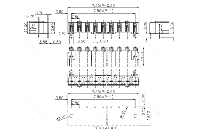 Pitch: 7.5mm