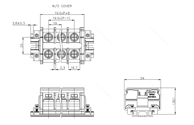 pitch:19.0mm,rated voltage UL600V, rated current UL80A, color: black, Rated cross section 20-4AWG